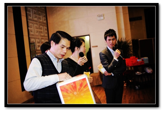 "Year-end party" consists of four parts, respectively is: the board chairman, general manager of toast, sweepstakes, game etc..