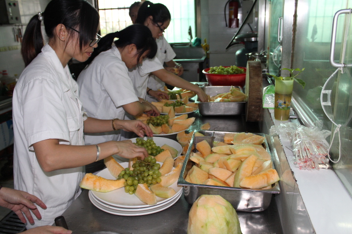 公司后勤人員為晚會準備豐富的水果