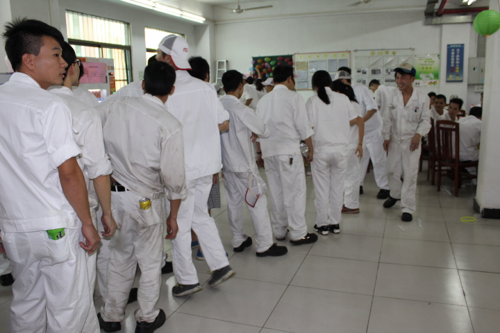 員工發(fā)放中秋禮物,并開始享用豐富晚餐